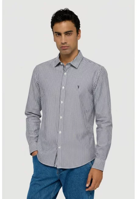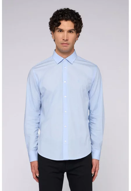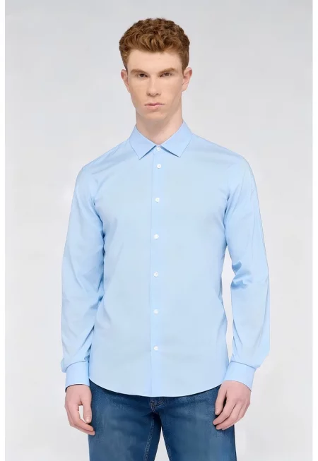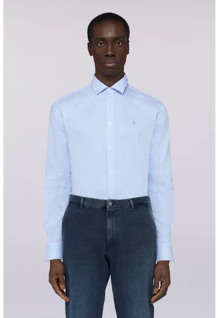 Елегантна риза сини райета - удобна - полиестер/еластан - размер SM