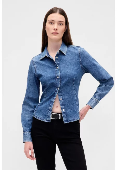 Дълга риза овърсайз - синя - полиестер/еластан - дълъг ръкав