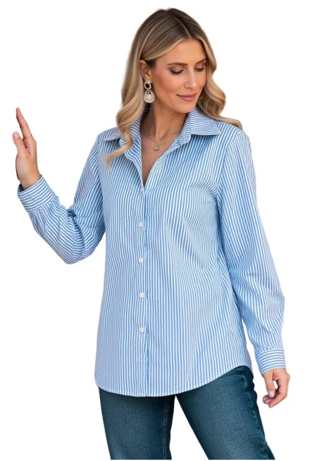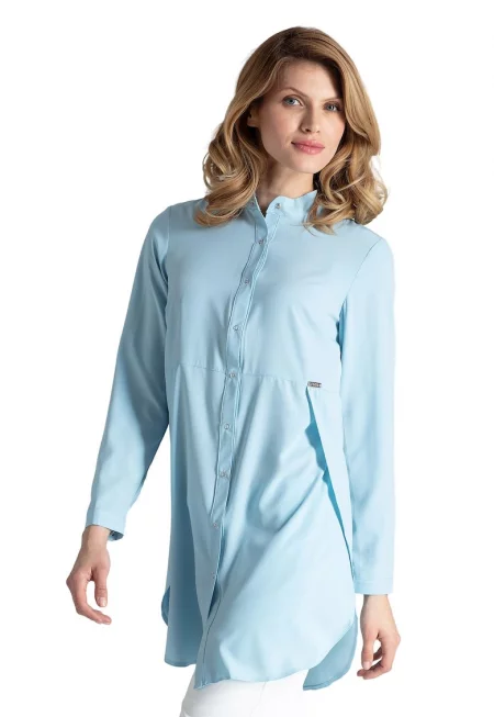 Дамска риза M647 - синя - дълъг ръкав - полиестер - ластик в долната част -