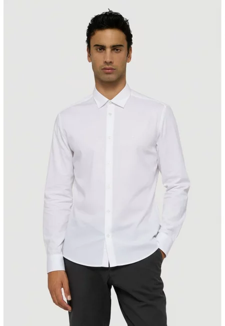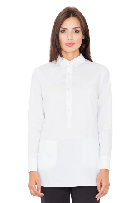 Дамска бяла риза M647 - дълъг ръкав - полиестер - ластик в долната част