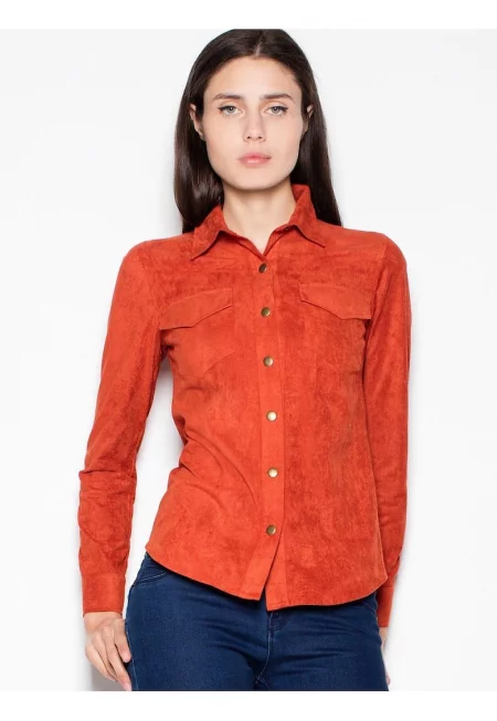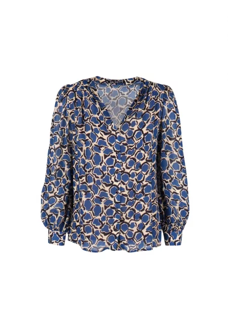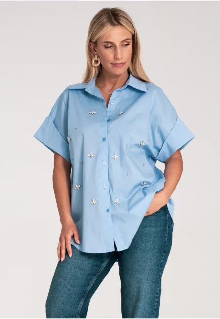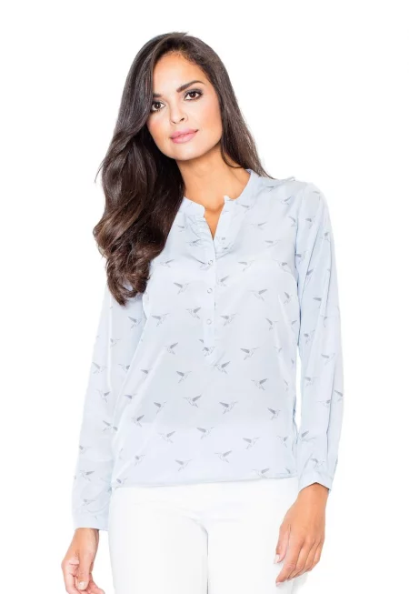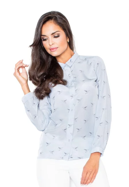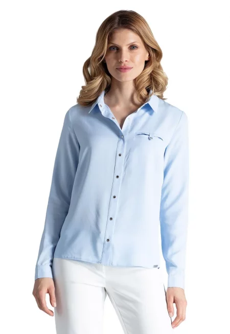 Дамска риза M581 - елегантна - синя - изработена от вискоза - с дълъг ръкав