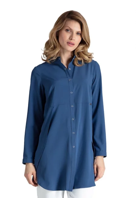 Дамска дълга риза M545 - тъмносиня - полиестер - дълъг ръкав -
