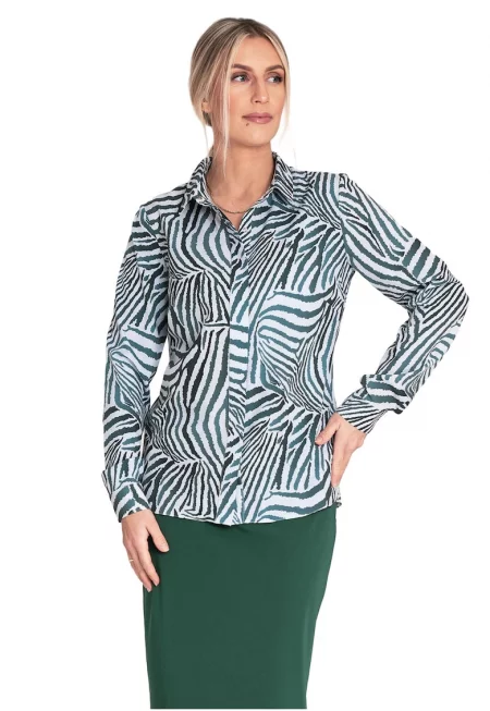 Дълга риза M545 - овърсайз - зелена - полиестерна - елегантна