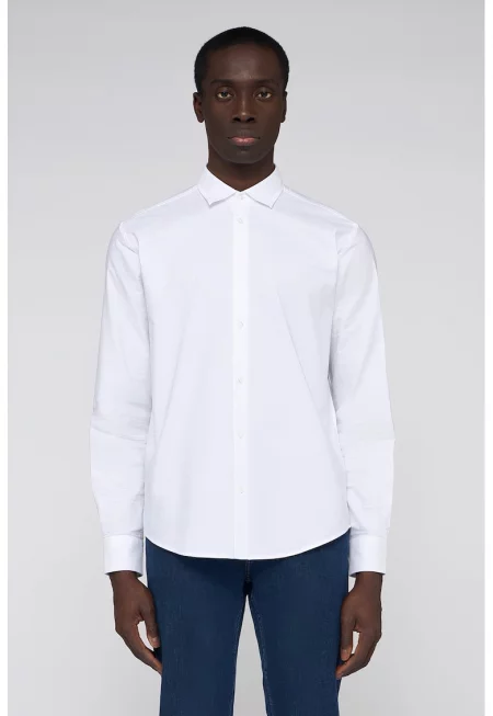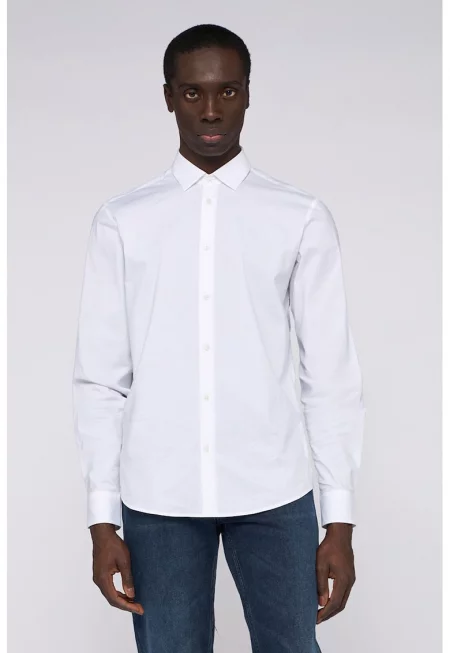 бяла риза с къс ръкав и 3/4 ръкав - изработена от полиестер