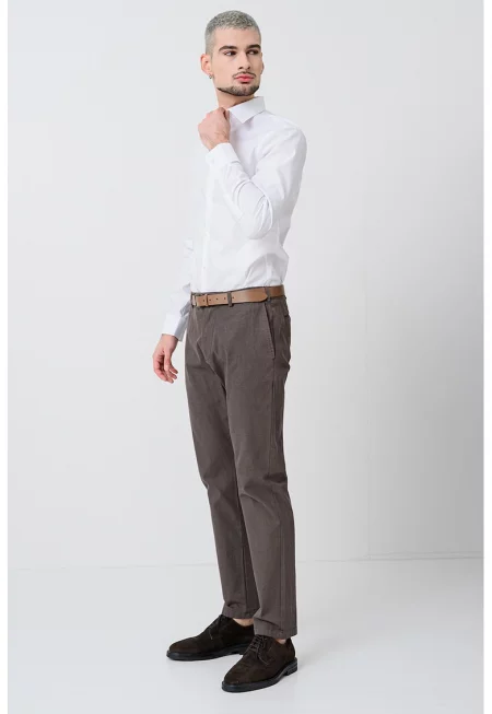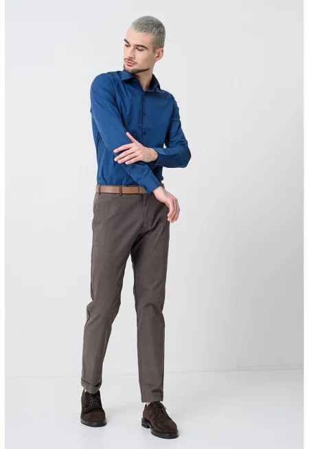 Мъжка риза с дълъг ръкав от смес памук и еластан - прилепнала кройка -