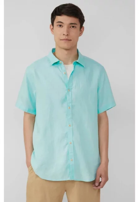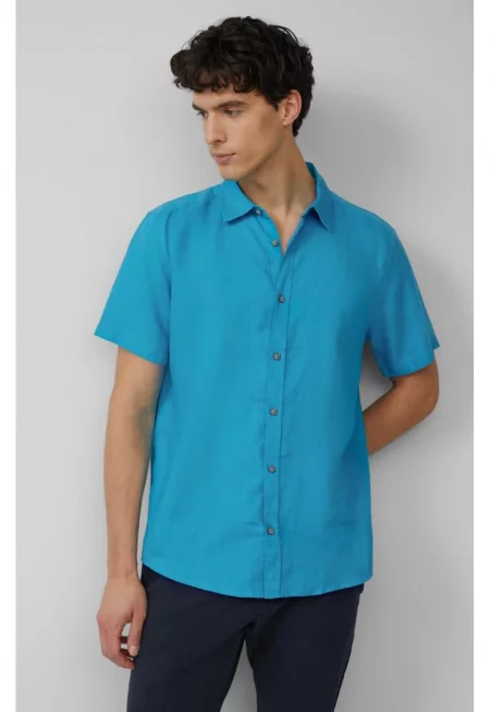 Мъжка лека риза с къс ръкав 100% лен - Regular fit - тюркоазено сива