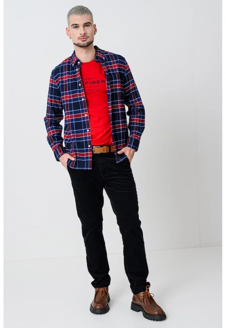 Мъжка риза - дълъг ръкав и карирана щампа - стандартна кройка