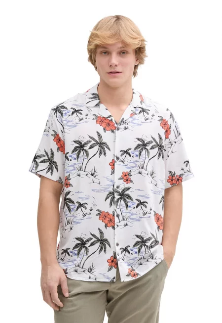 Мъжка ленена риза с флорален принт и Regular Fit кройка - бяла