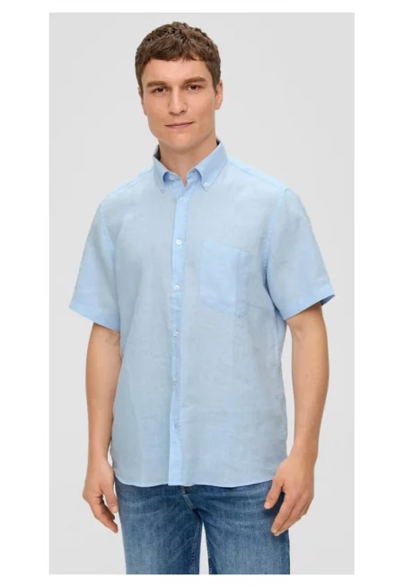 Мъжка ленена риза с къс ръкав и стандартна кройка - светлосиня
