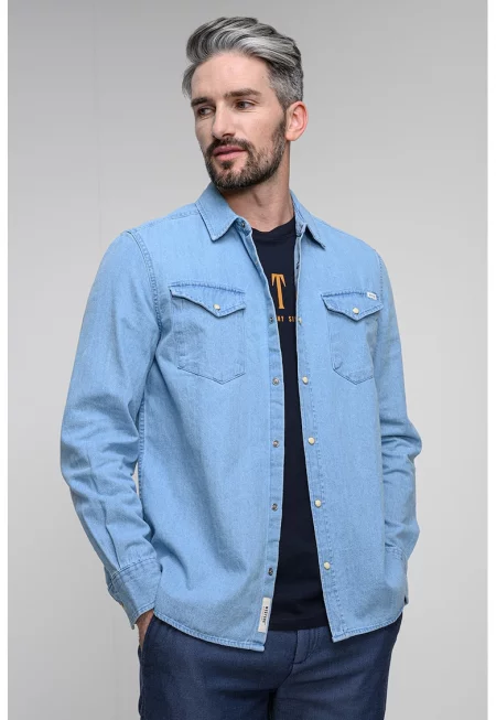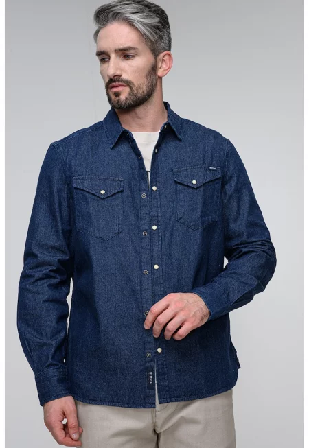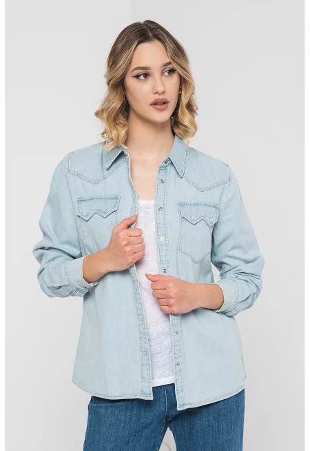 Дънкова риза с джобове на гърдите