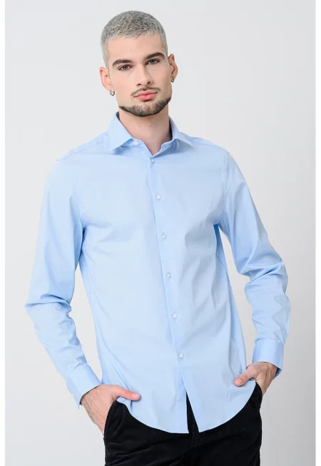 Мъжка риза с дълъг ръкав - изработена от памук - Regular fit - светлосиня