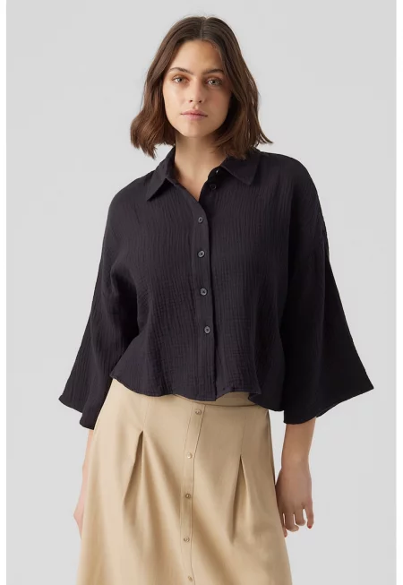 Памучна риза с паднали ръкави