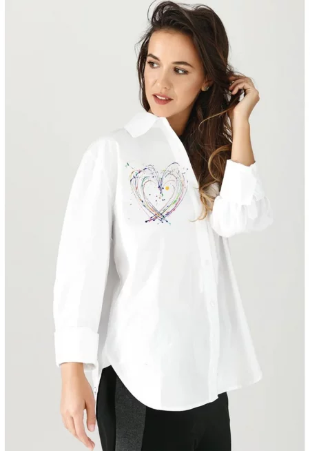 Памучна риза със сърцевиден принт и надпис