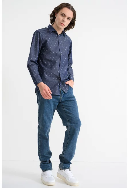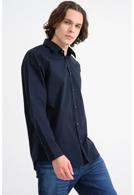 Мъжка риза - модерна кройка 5951 - тъмносиня