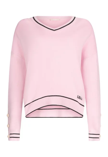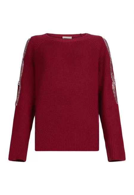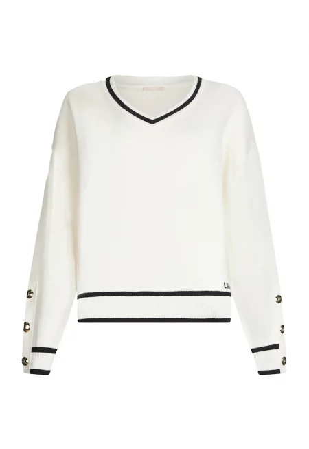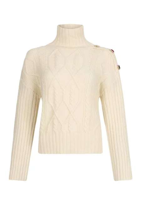 Пуловер с вълна с бижутерски копчета