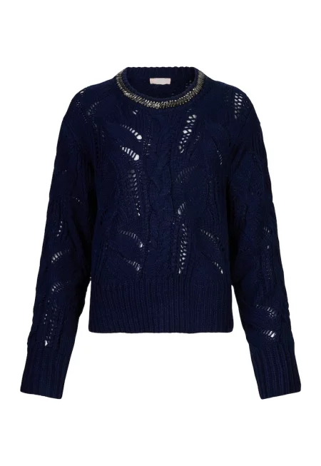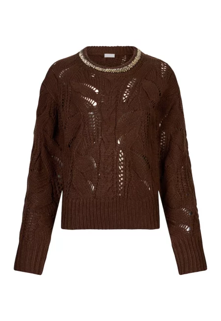Пуловер с вълна с ажур