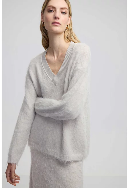Пуловер с вълна с шпиц