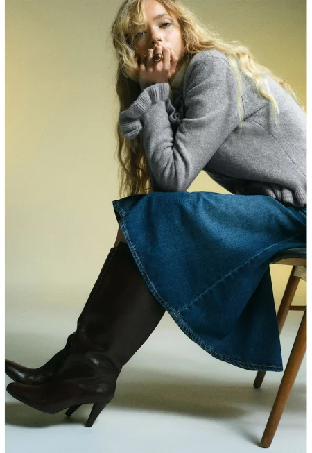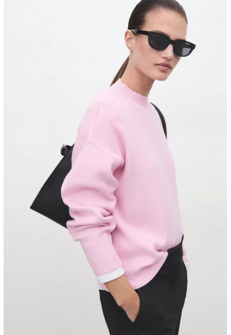 Свободен пуловер с миди яка