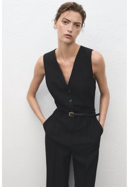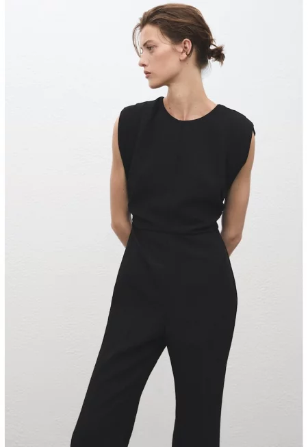 Разкроен гащеризон с колан - Черен -