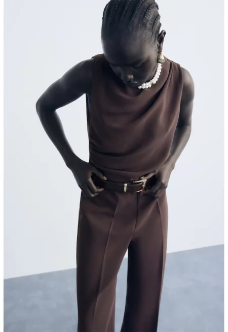 Дълъг гащеризон с набрано деколте