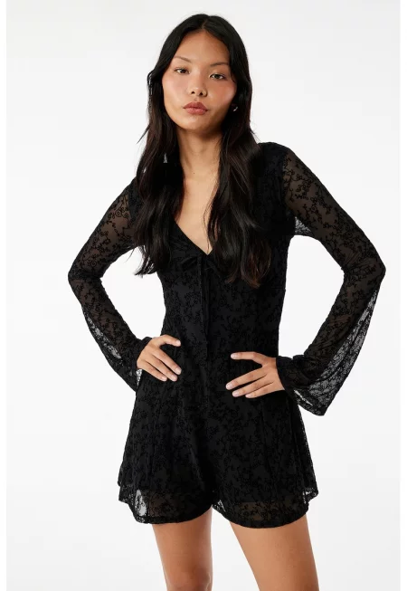 Къс гащеризон с флорална дантела