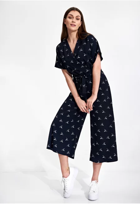 Кимоно гащеризон - елегантен и удобен - полиестер - тъмносин