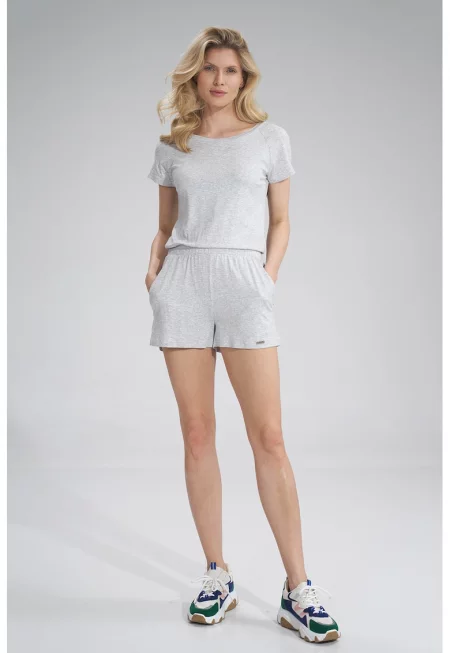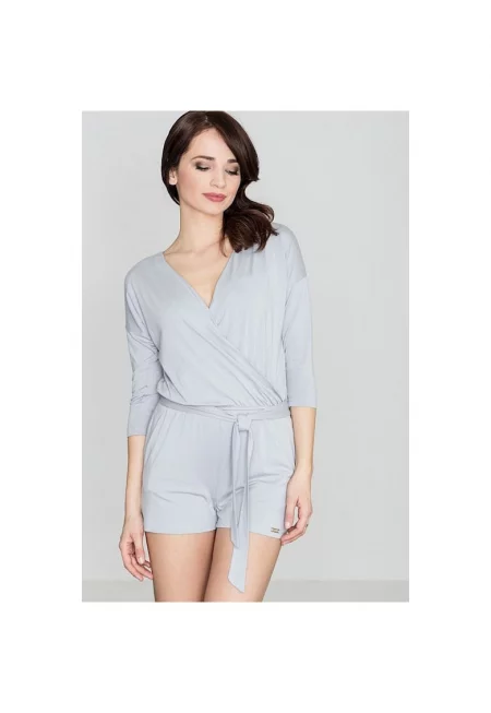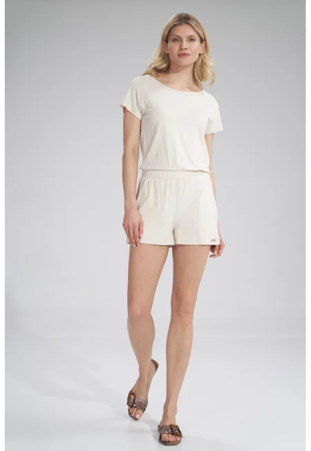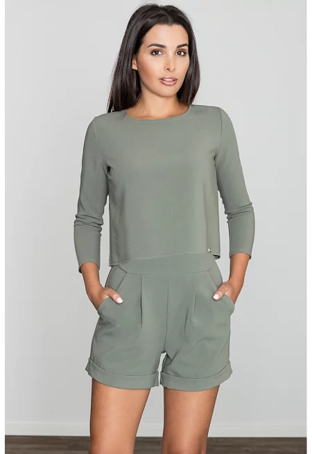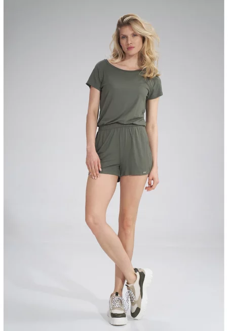 Дамски къс гащеризон - маслиненозелен - вискоза -