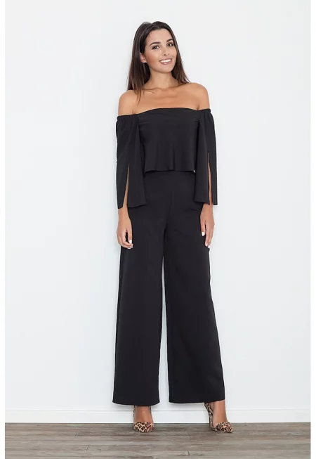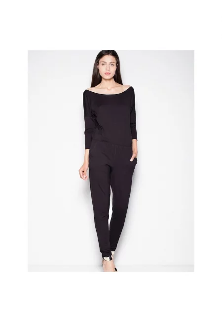 Дамски гащеризон - без ръкави - черен - полиестер -