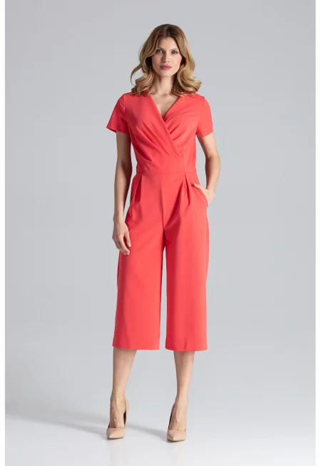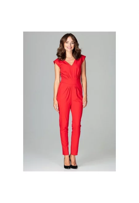 Дамски гащеризон - широки крачоли - червен - полиестер -