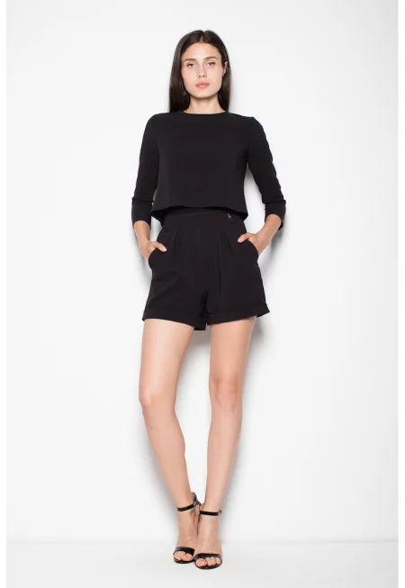 Гащеризон къс - без ципове - къси ръкави - черен - вискоза -