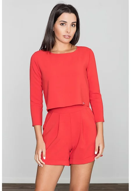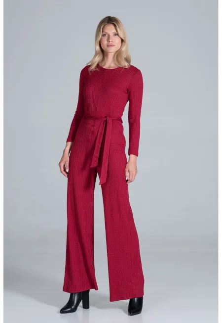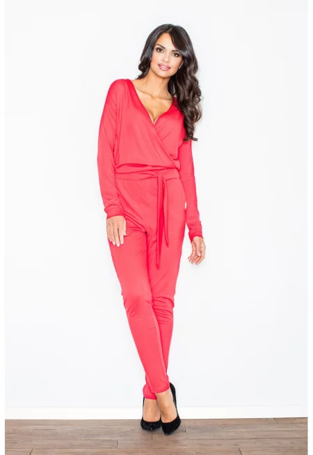 Дамски гащеризон - червен - вискоза - дълъг ръкав