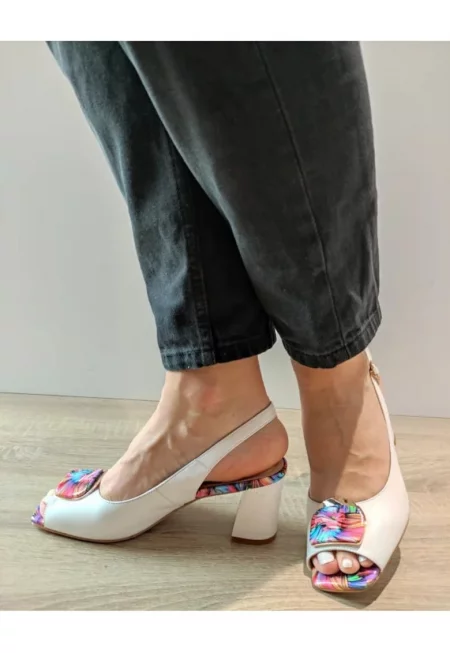 Ежедневни дамски сандали 413V8-80 Бели + Цвят - Бял