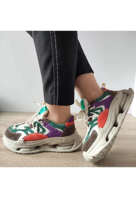 Дамски спортни обувки 37901-813 - Кафяв Велур + Цвят