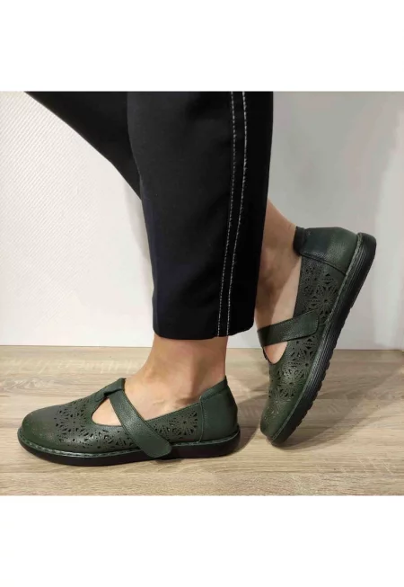 Дамски перфорирани обувки 3233-88 - Зелени