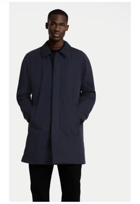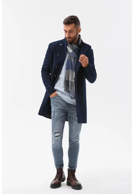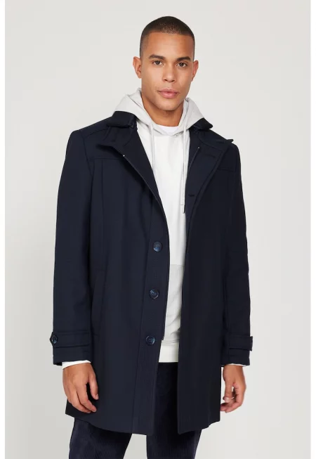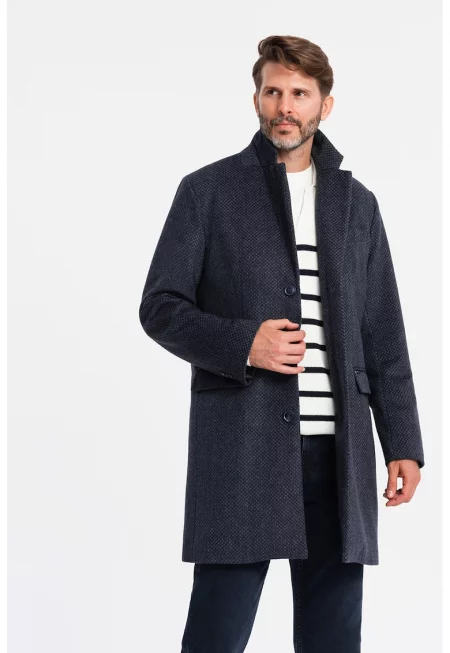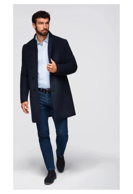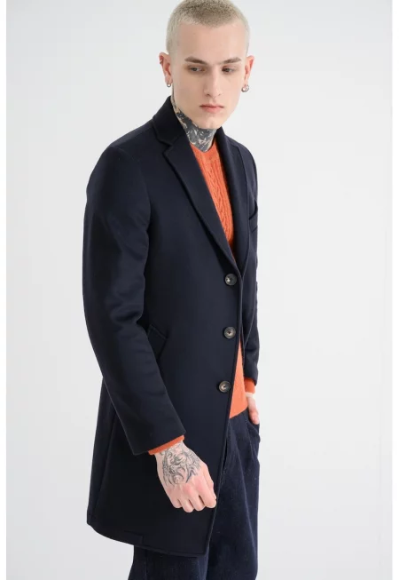 Мъжко палто със скосени джобове и копчета - Тъмносин