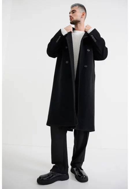 Мъжко палто от смесена вълна - с двойно закопчаване -