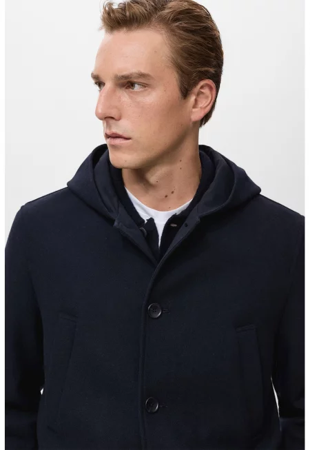 Палто с вълна с качулка