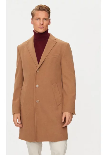 Мъжко палто - 304463938 - Вълна/Полиестер - Кафяв