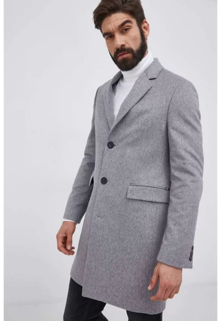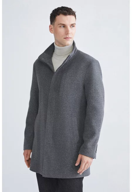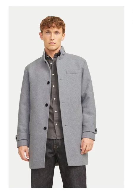 Мъжко палто - Melton 12258672 - Сиво - Полиестер/Вълна