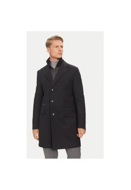 Мъжко палто - 303389512 - Вълна/Полиестер - Черно