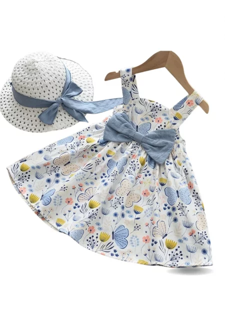 Рокля за момичета с панделки и шапка