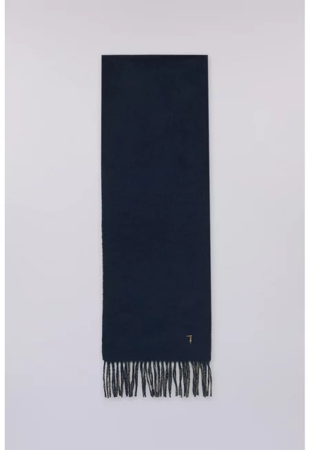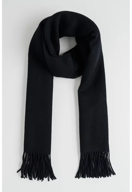 Вълнен шал с ресни - Тъмносин