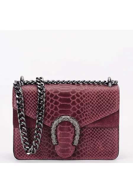 Малка бордо чанта от естествена кожа 8936 120 18100