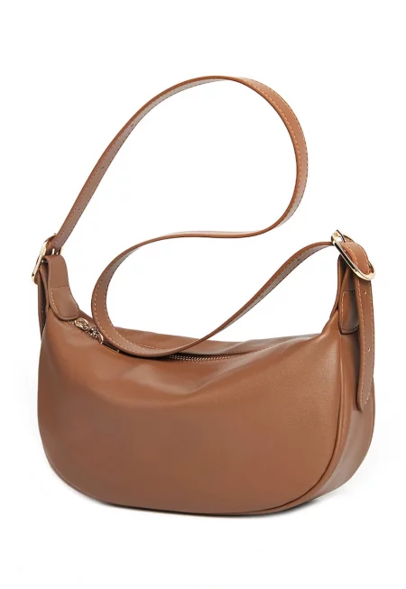 Характеристики Цвят: светлокафяв Материал: екологична кожа Модел: за рамо Стил: ежедневен Принт: лого Дръжка: регулируеми Джобове: един заден Отделения: едно - основно Цвят на метала: златист Закопчаване: капси Състав Външна част: синтетика Размери Размери (см): 18x22x10