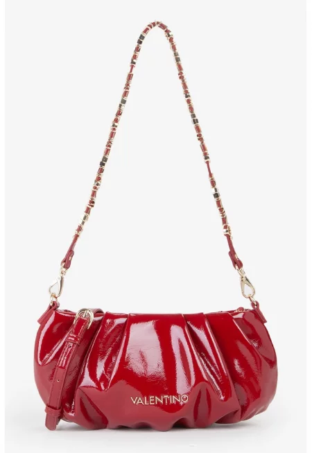 Характеристики Цвят: черен Материал: екологична кожа Модел: ръчна чанта Стил: елегантен Принт: лого Дръжка: една - фиксирана Презрамки: отделяща се презрамка с верижка Отделения: едно отделение Цвят на метала: златист Закопчаване: магнитни капси - капаче Детайли: лачен ...