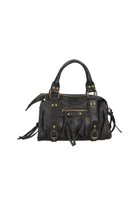 Характеристики Цвят: черен Материал: екологична кожа Модел: чанта през рамо Стил: ежедневен Принт: без принт Презрамки: верижка Отделения: основно Цвят на метала: златист Закопчаване: цип Състав Външна част: 100% полиуретан Размери Размери (см): 17x26x7