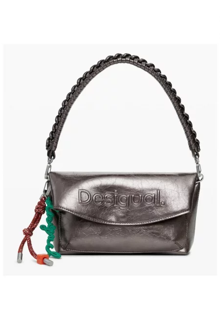Характеристики Цвят: избеляло черно Материал: екологична кожа Модел: чанта през рамо Стил: ежедневен Принт: без принт Презрамки: регулируеми Цвят на метала: сребрист Закопчаване: цип Детайли: релефна повърхност - лого Състав Външна част: 100% полиуертан Размери Размери ...