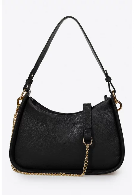 Характеристики Цвят: черен Материал: екологична кожа Модел: чанта през рамо Стил: ежедневен Принт: лого Презрамки: 1 - регулируема Отделения: основно Цвят на метала: златист Закопчаване: цип Състав Външна част: 100% полиуертан Размери Размери (см): 14 x 20 x 7 cm