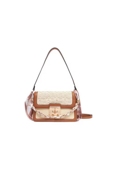 Характеристики Цвят: пепеляво сиво Материал: екологична кожа Модел: чанта през рамо Стил: ежедневен Принт: лого Презрамки: регулируеми Отделения: основно Цвят на метала: златист Закопчаване: цип Състав Външна част: 100% кожа Размери Размери (см): 11x23x5