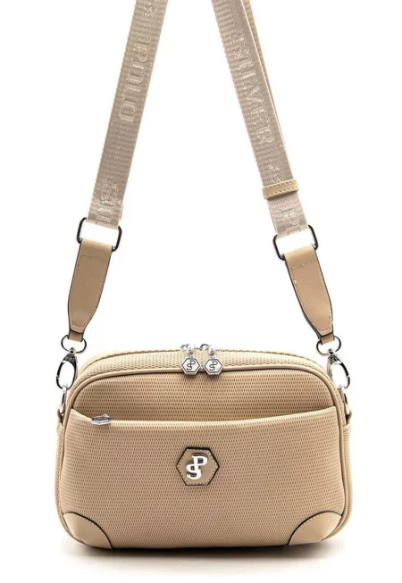 Чанта през рамо от еко кожа на каре - Бежов